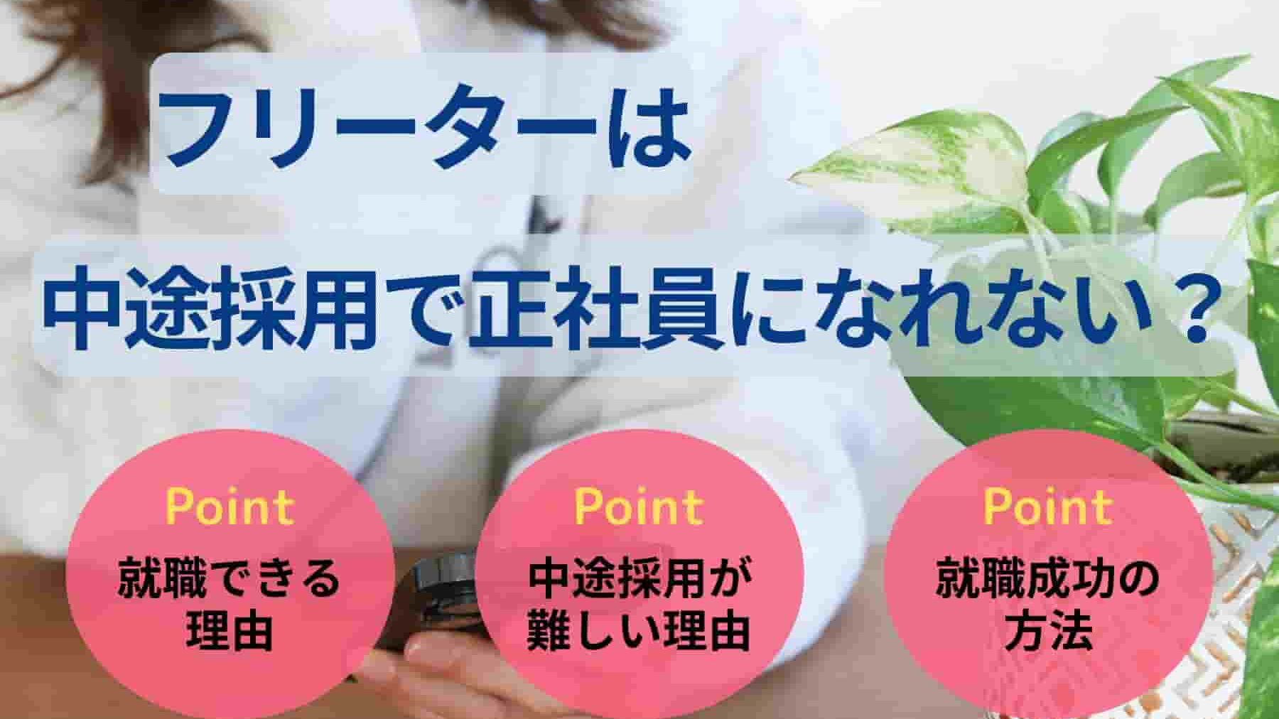 中途採用において、フリーターから正社員を目指すのは難しいと言われている一方、多くの企業でフリーターが採用対象になってなっているだけでなく、実際に半数のフリーターが正社員になれているといったデータがあります。